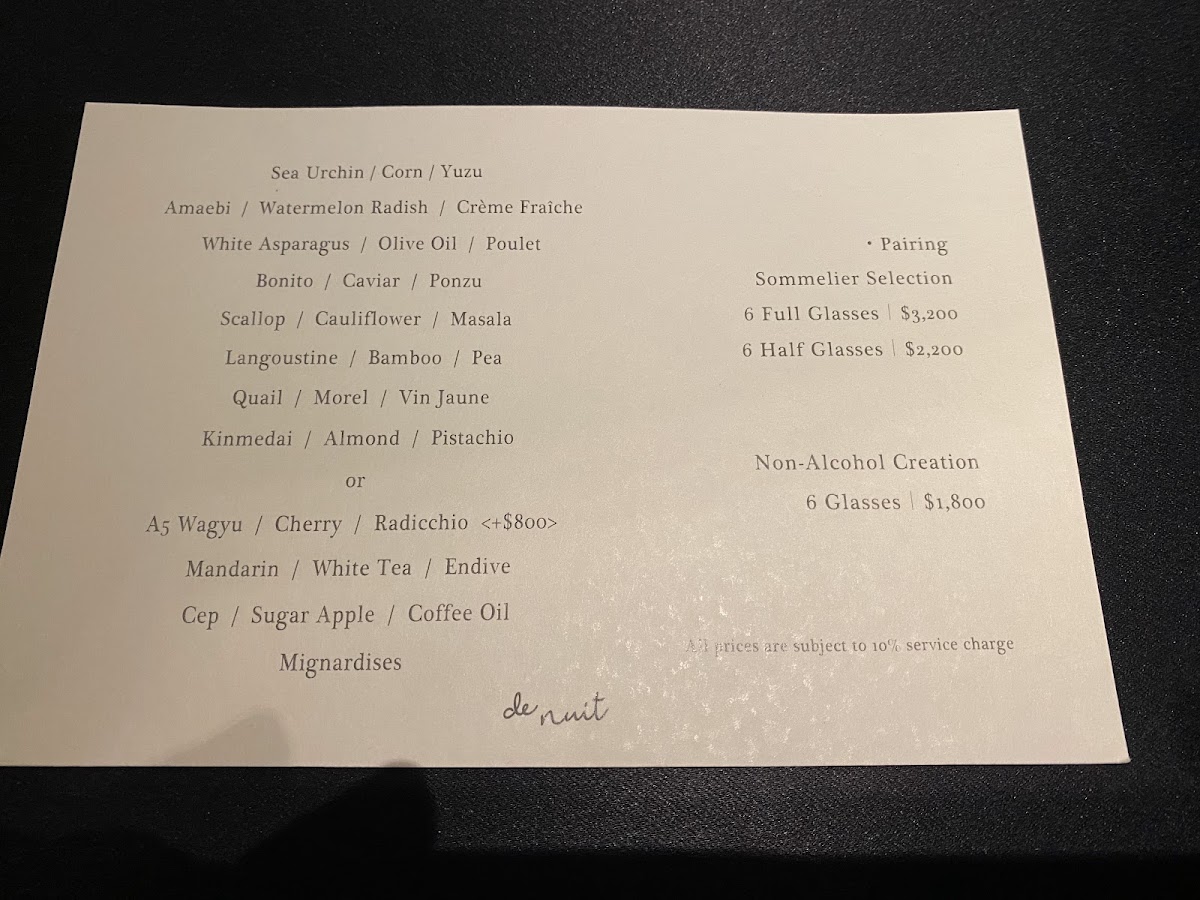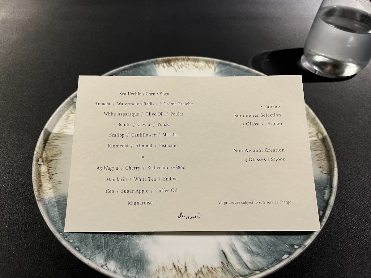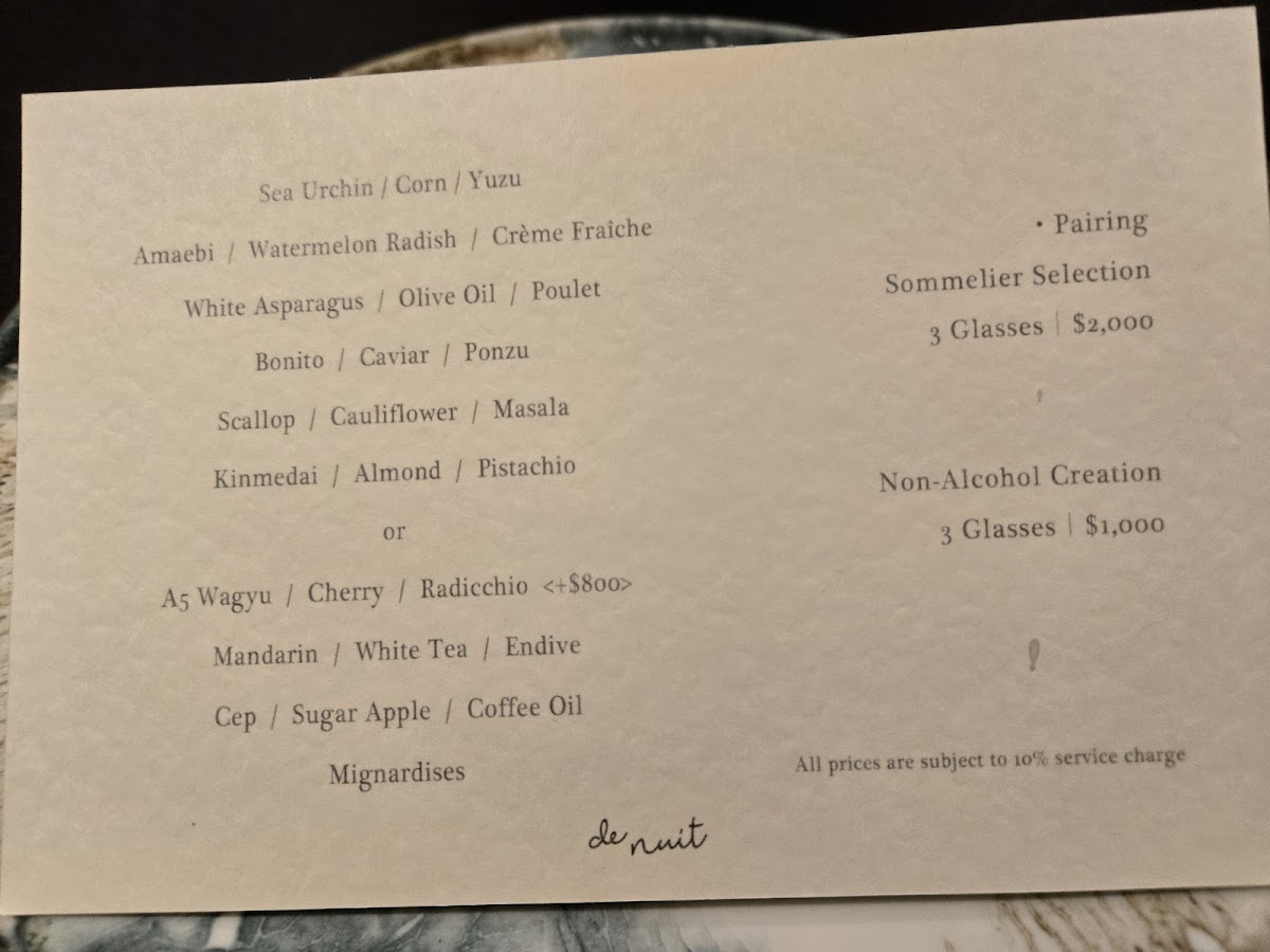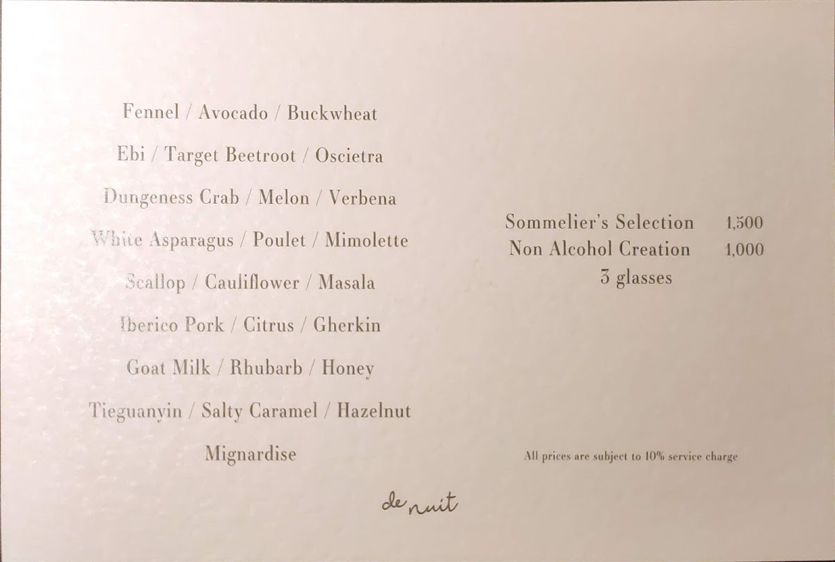 At de nuit, the menu reflects a refined approach to Modern French cuisine, thoughtfully crafted to complement the restaurant’s elegant and tranquil atmosphere. Guests can expect a selection of carefully prepared dishes that balance creativity and seasonal freshness, ideal for an intimate dinner or a special evening out.